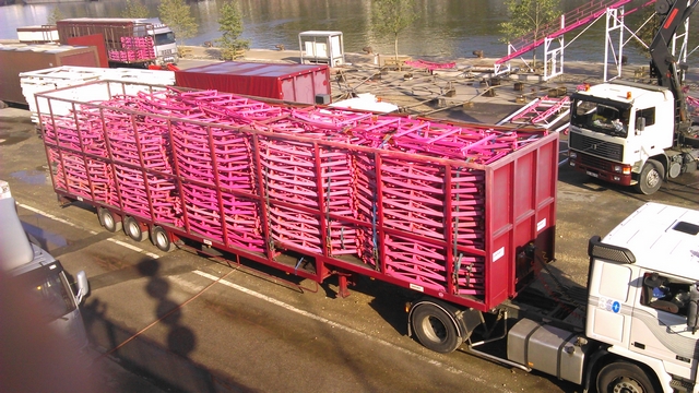 Voici donc les premiers métiers arrivés. A rouen la place étant restreinte, les métiers doivent arriver dans un ordre bien précis pour ne pas se gêner lors du montage.
