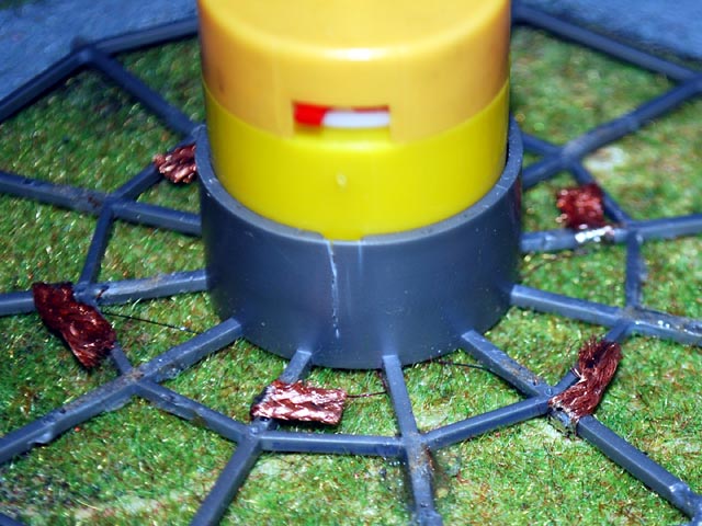 Ensuite je mets un peu de soudure avant de couper sinon elle s'effiloche, je coupe le morceau à la longueur désirée (environ 2 à 3 cm), puis je plie à 90 degrés au niveau de la soudure, et en fin elle est simplement collée à la super glue dans le sens de rotation du manège, bien sur ne pas oublier le petit fil d'alimentation.