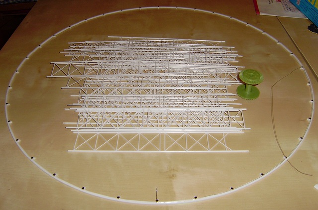 36 rayons et 144 tirants a coller ! Voila l'ensemble !!! 36 nacelles X 16 autocollants par nacelle = 576 autocollants a poser !!!