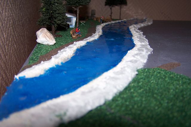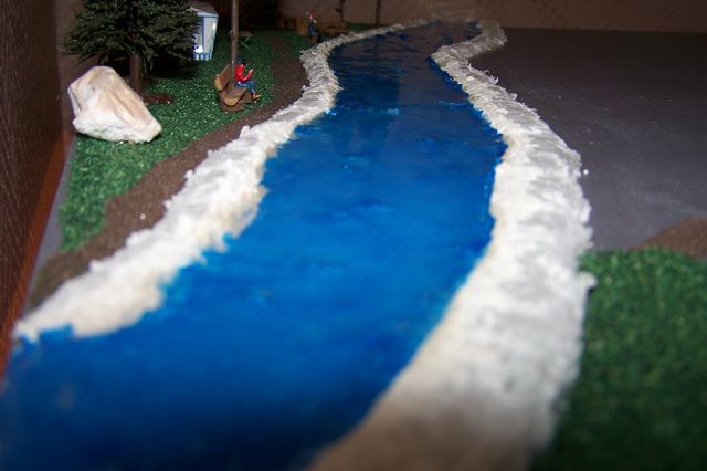 Vous pouvez rajouter un peu d'ecume" en tapotant par endroits (remous cause rochers par exemple) avec du blanc humbrol appliqué presque sec sur le bout d'un pinceau... Faire des essais car c est delicat...