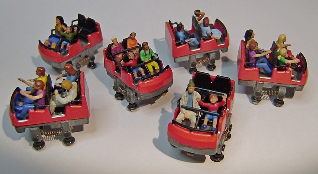 Pas de probleme cause figurines, j ai dû quand meme à la construction de la piste corriger quelques défauts de montants qui debordaient sur le gabarit des wagonnets.