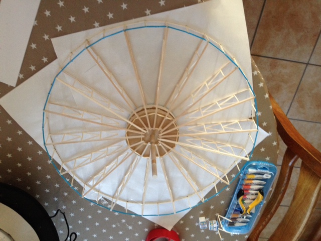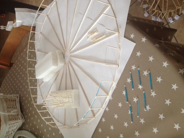 J'ai bien avancé aujourd'hui. J'ai fini d'assembler les allumettes pour la roue.